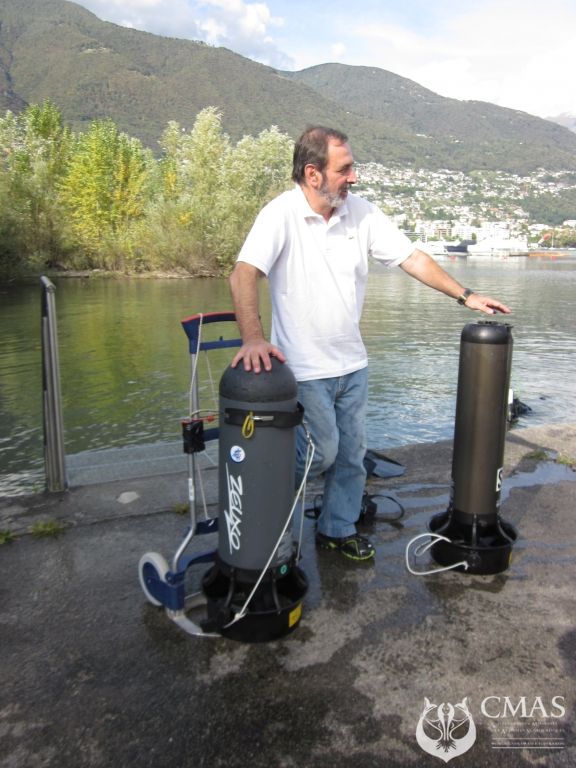 During the meeting the Swiss federations organized a scooter demonstration and hands on training. The reason is that the CMAS scooter standard (this was introduced some years ago) is not selling a lot of C-cards. The TC recognizes that a lot more advertising and promotion is needed. This is just a small beginning in promoting this standard. Both recreational and professional scooters were on hand for the training and the advantages of these items were realized.
