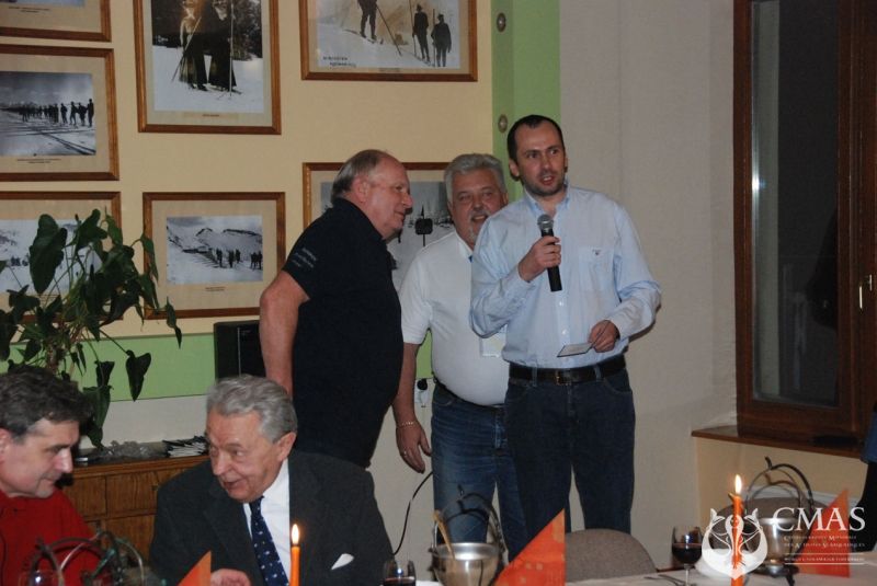 There was a very full program of very distinguished speakers and all presentations were very well attended. Among the distinguished speakers were the President of the CMAS Technical Committee Mr. Kevin O'Shaughnessy who spoke of what the benefits of being a family member of the CMAS meant and what the CMAS TC can offer. Also the CMAS TC group leader for International Cave diving, Beat Müller, presented on the safety aspects of cave diving. Doctor Jacek Kot gave a trilling presentation on the safety aspects of Diving and on the effects of Decompression Illness and how to avoid getting the "Bends". We enjoyed the high level of presentations and through questions and answers a lot was learned. As usual we had a lot of snow and the Tatra Kalatowki Hotel was perfect for those who wanted to partake in skiing and snow boarding, the climate was excellent. During a special dinner on the last evening, some of the KDP/CMAS instructors were honoured with gold badges "For extemporary contribution and dedication to KDP/PTTK". The Honours were given on behalf of the KDP/PTTK board by the President of Polish Underwater Activity Commission (KDP/CMAS PTTK) Mr. Michal Gorny, he himself was also honoured at the end.