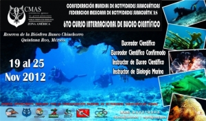 La Federación Mexicana de Actividades Subacuáticas (FMAS), con el apoyo y aval de CMAS Zona América, convocan al 6to. Curso Internacional de Buceo Científico FMAS-CMAS Zona América de acuerdo a los estándares establecidos por la CMAS para los 3 niveles de Buceador Científico e Instructores de Biología marina. El curso se realizará en la Reserva de la Biósfera de Banco Chinchorro, Quintana Roo, México, del 19 al 25 de Noviembre de 2012. El curso será dirigido por la CISD Ma. Clotilde Zeckua Ramos, Directora del Comité Científico CMAS Zona América y la CISD María del Carmen García Rivas, Directora de la Reserva de la Biósfera de Banco Chinchorro.