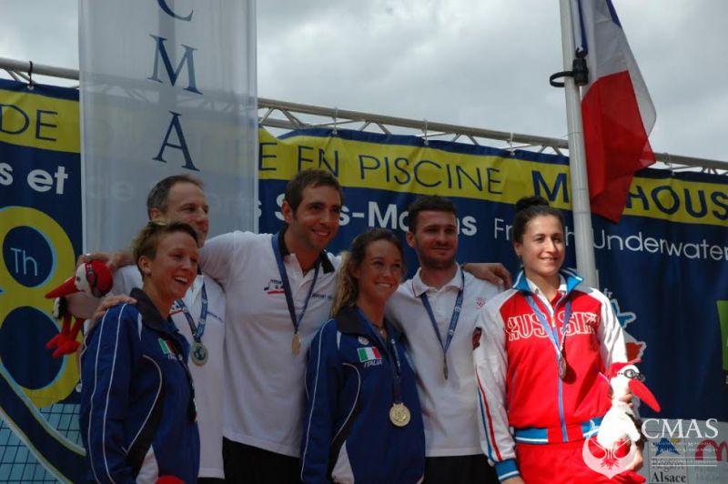 Both countries have been offered the gold medal and a new world record in the dynamic apnea without fin finals: Italy with a record of 165,34 meters made by ALESSIA ZECCHINI and France with 182,88 meters with the new world champion ARTHUR GUERIN-BOËRI.