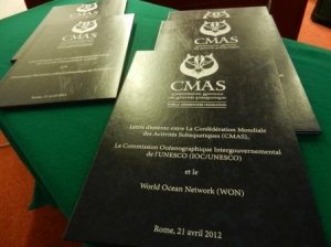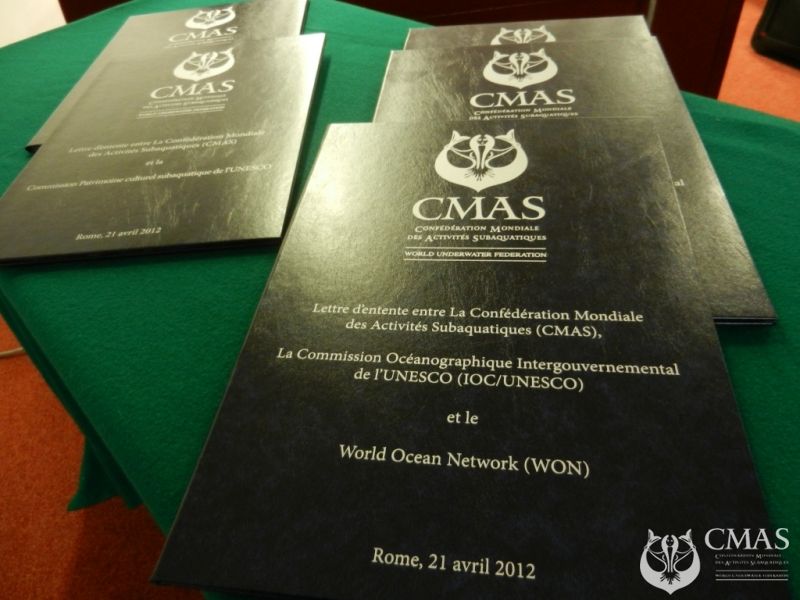 UNESCO representatives attended the CMAS General Assembly 2012 in Rome, and two outstanding protocols were signed between CMAS and two important commissions: the Intergovernmental Oceanographic Commission (IOC) and the Commission for the Protection of the Underwater Cultural Heritage. Mr. Luis Valdes for the former and Mrs. Ulrike Guerin for the latter, before the signature of the protocols took the floor during the General Assembly explaining the importance of these agreements between UNESCO and such an important organization in the underwater activities field like CMAS.