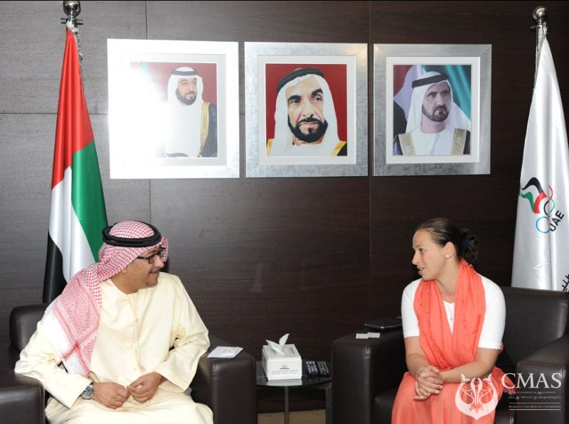 During the week of 17 November 2013, the UAE Swimming Federation was pleased to welcome Anna Arzhanova, the President of CMAS (World Underwater Federation) who made a friendly visit to Dubai. Ms. Arzhanova’s visit provided an introductory opportunity for topics of mutual collaboration to be discussed.