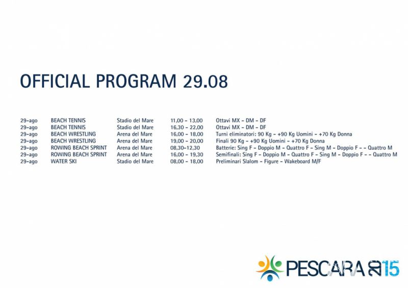 From 9 am until 5pm the Rowing Beach Sprint took place at the Arena del Mare, while Beach Tennis started at 10 am at the Stadio del Mare.