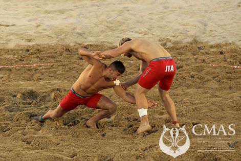 BEACH WRESTLING: Italy wins the first gold medal in Beach Wrestling. SalvatorePurpura is placed first because the Greek Timofei Xenidis retires. Bronze medal to the Egyptian Moustafa.