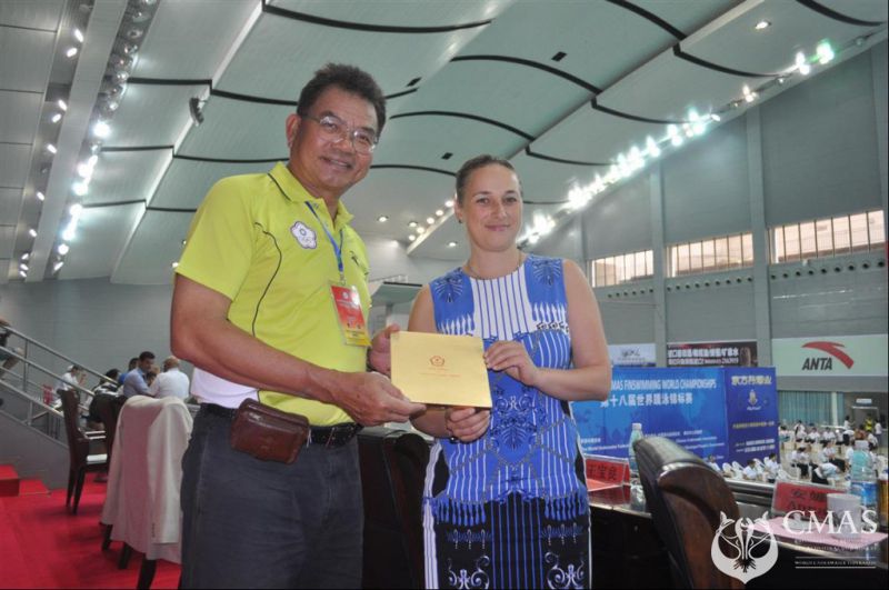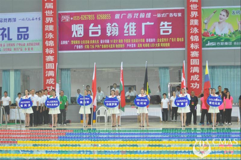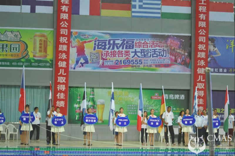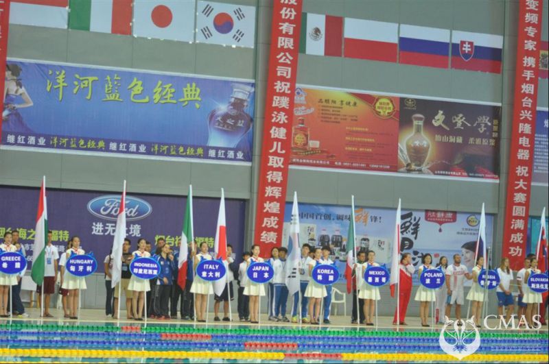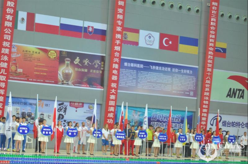 The ceremony was officially opened by CMAS President Mrs. Anna Arzhanova and followed by the jury and swimmers' parade.
