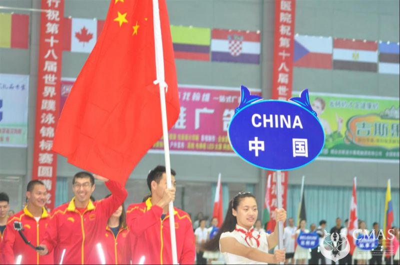 18.07.2015The 18th CMAS Finswimming World Championships were launched yesterday with a huge opening ceremony organized by the Chinese Underwater Association with the help of the Chinese authorities.